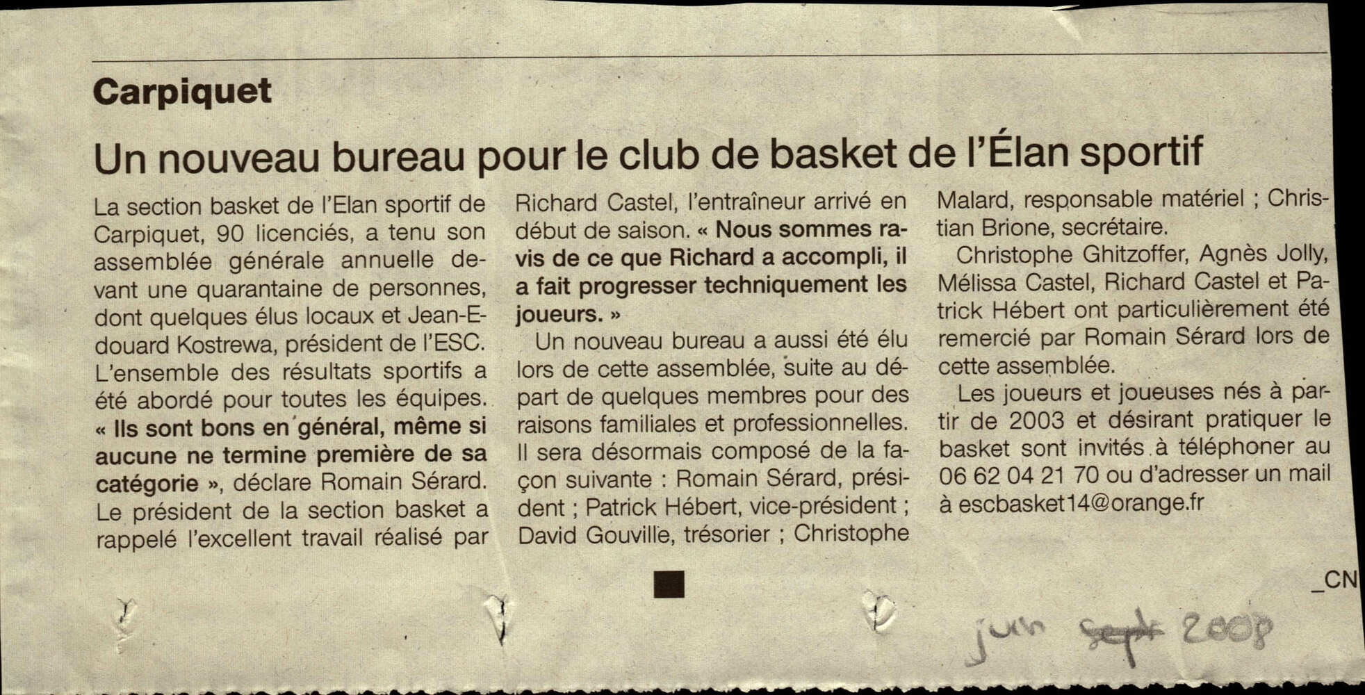 Le bureau de l’Élan Sportif Carpiquet Basket est composé de bénévoles et membres actifs qui œuvrent chaque jour pour le développement du club, l’organisation des compétitions et la formation des joueurs et joueuses.