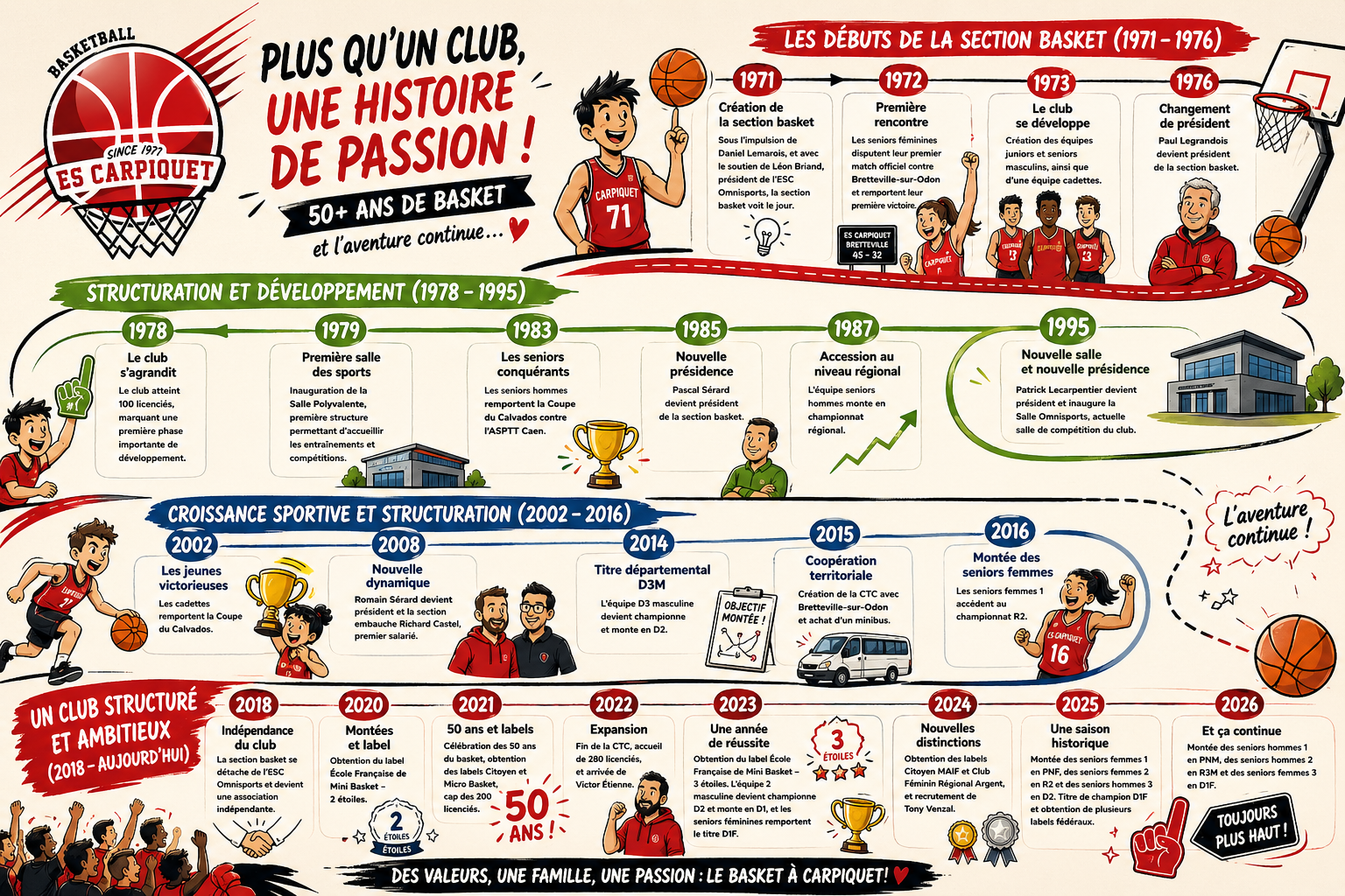 Aujourd’hui, avec plusieurs équipes jeunes et seniors et près de 340 licenciés, le club poursuit son développement et continue de faire vivre le basket à Carpiquet.